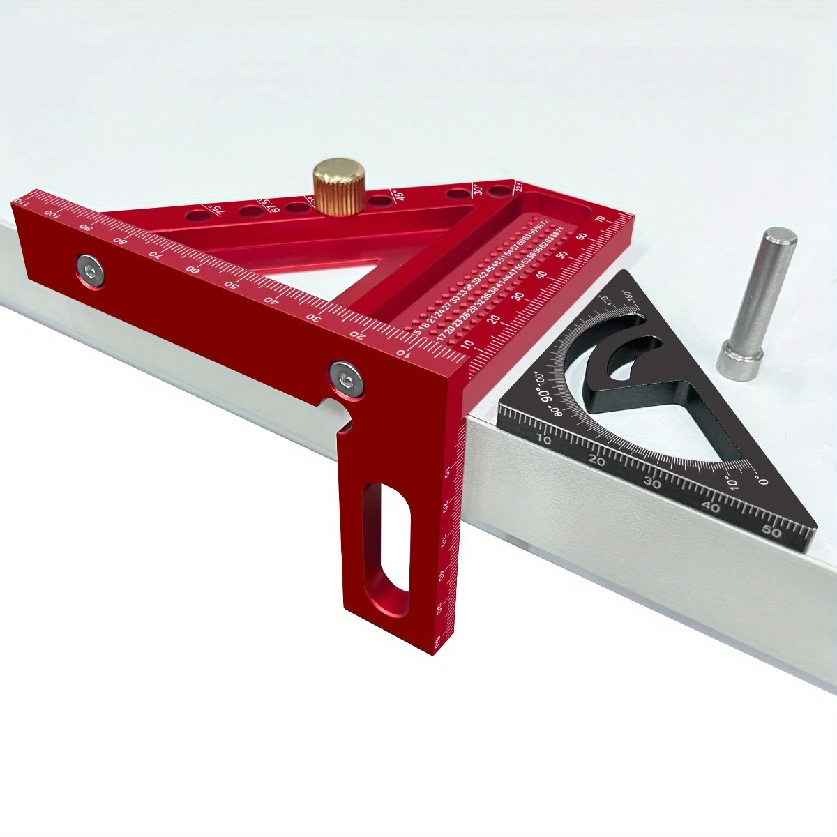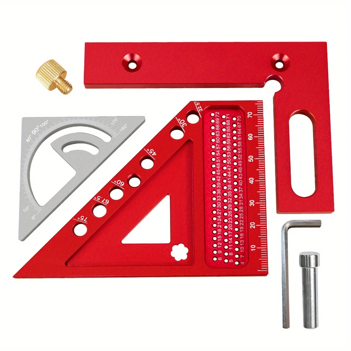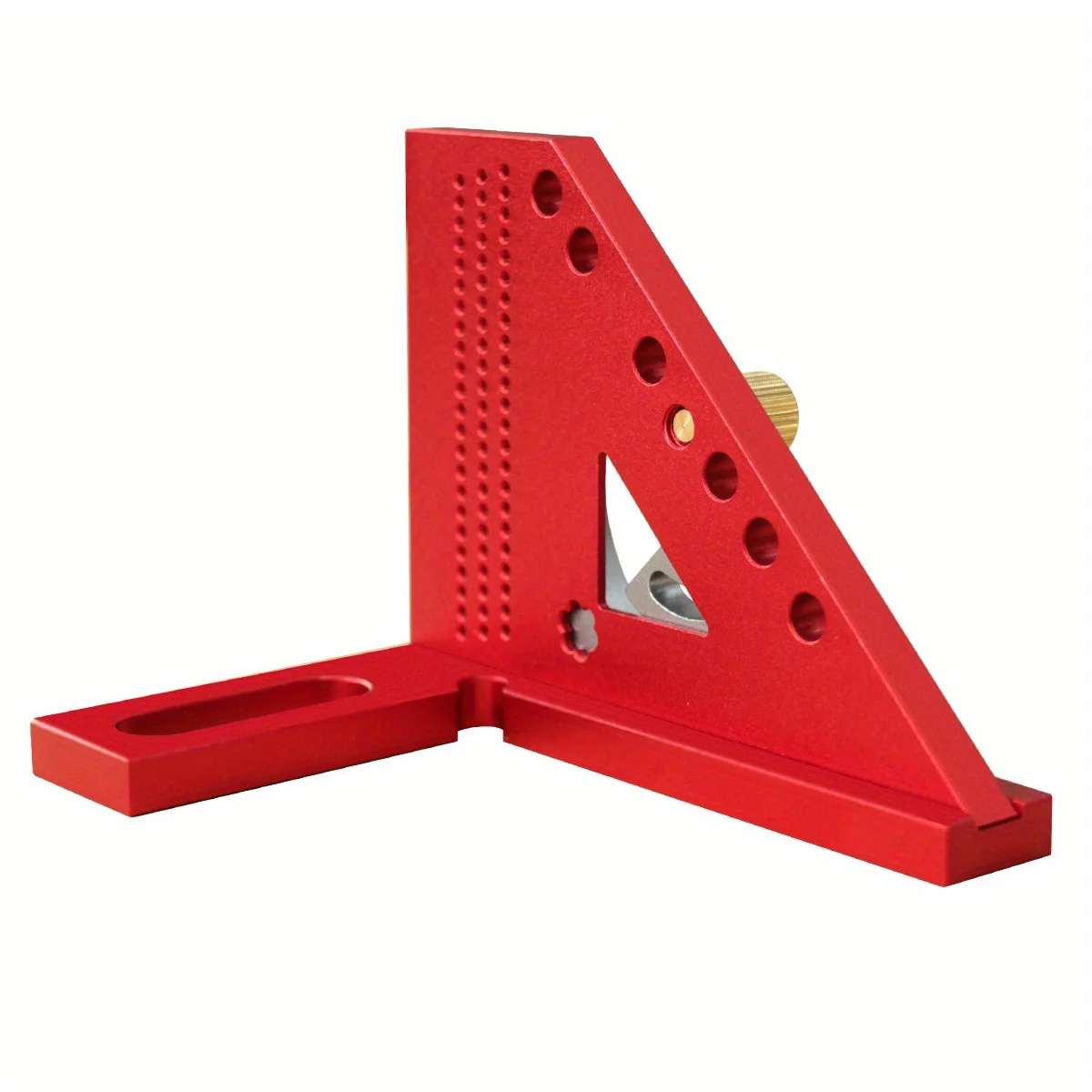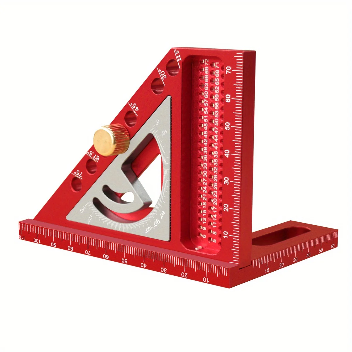 Transportador cuadrado de carpintería multiángulo 3D con regla triangular pequeña con pasador de posicionamiento de ángulo y agujero de trazado cuadrado en T