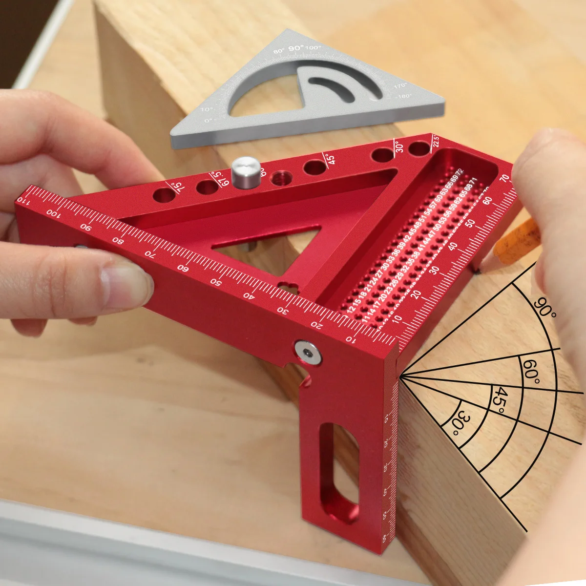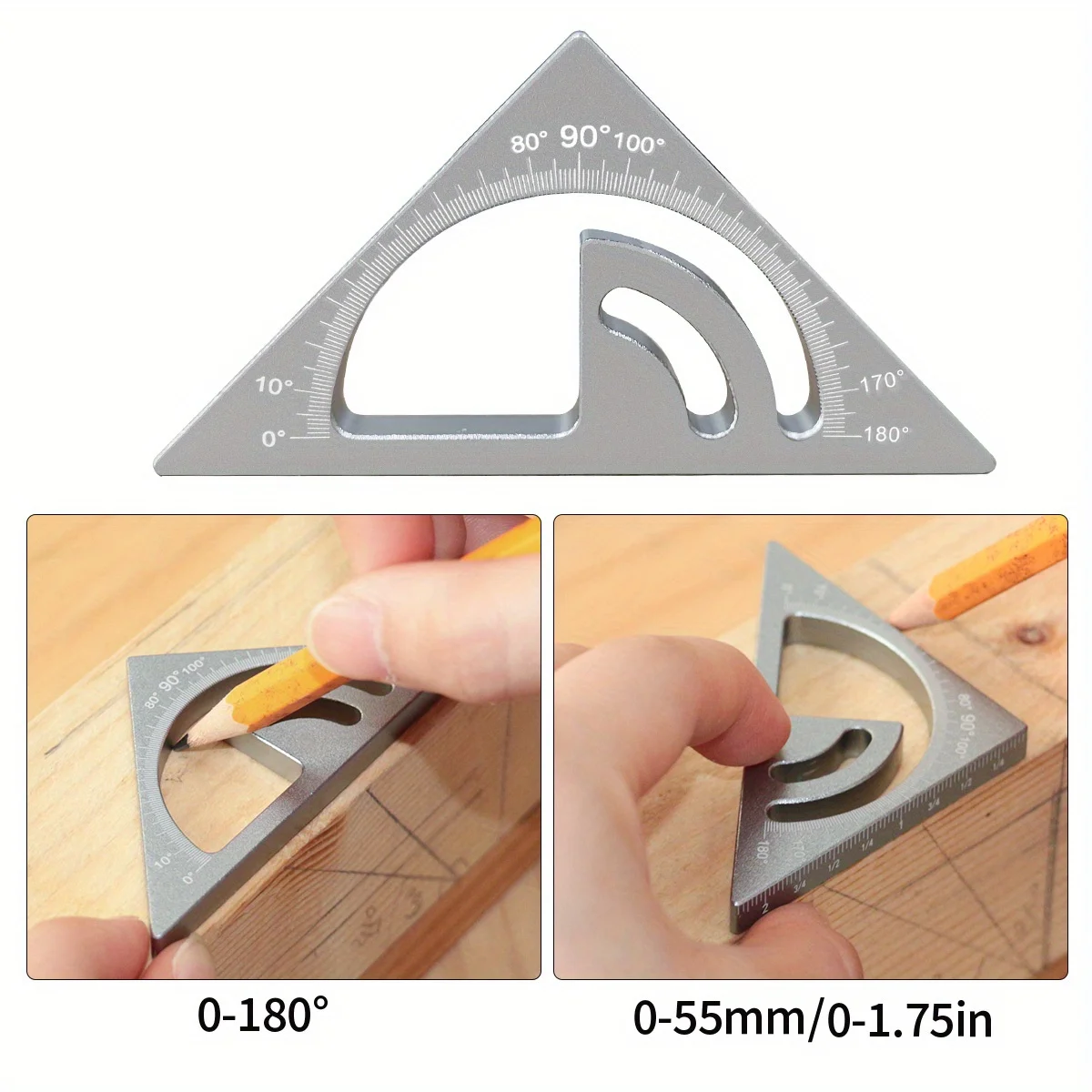 Sé el primero en valorar “Transportador cuadrado de carpintería multiángulo 3D con regla triangular pequeña con pasador de posicionamiento de ángulo y agujero de trazado cuadrado en T”